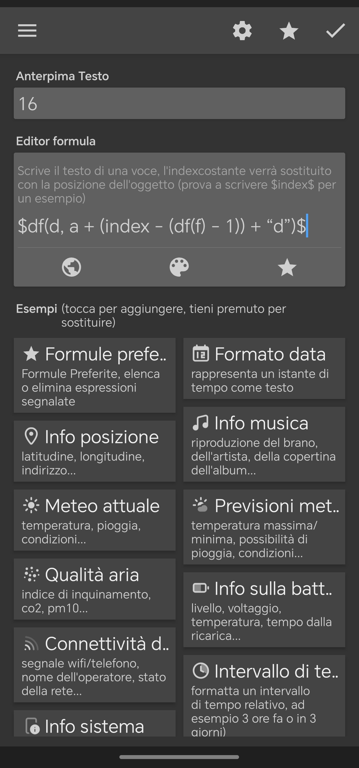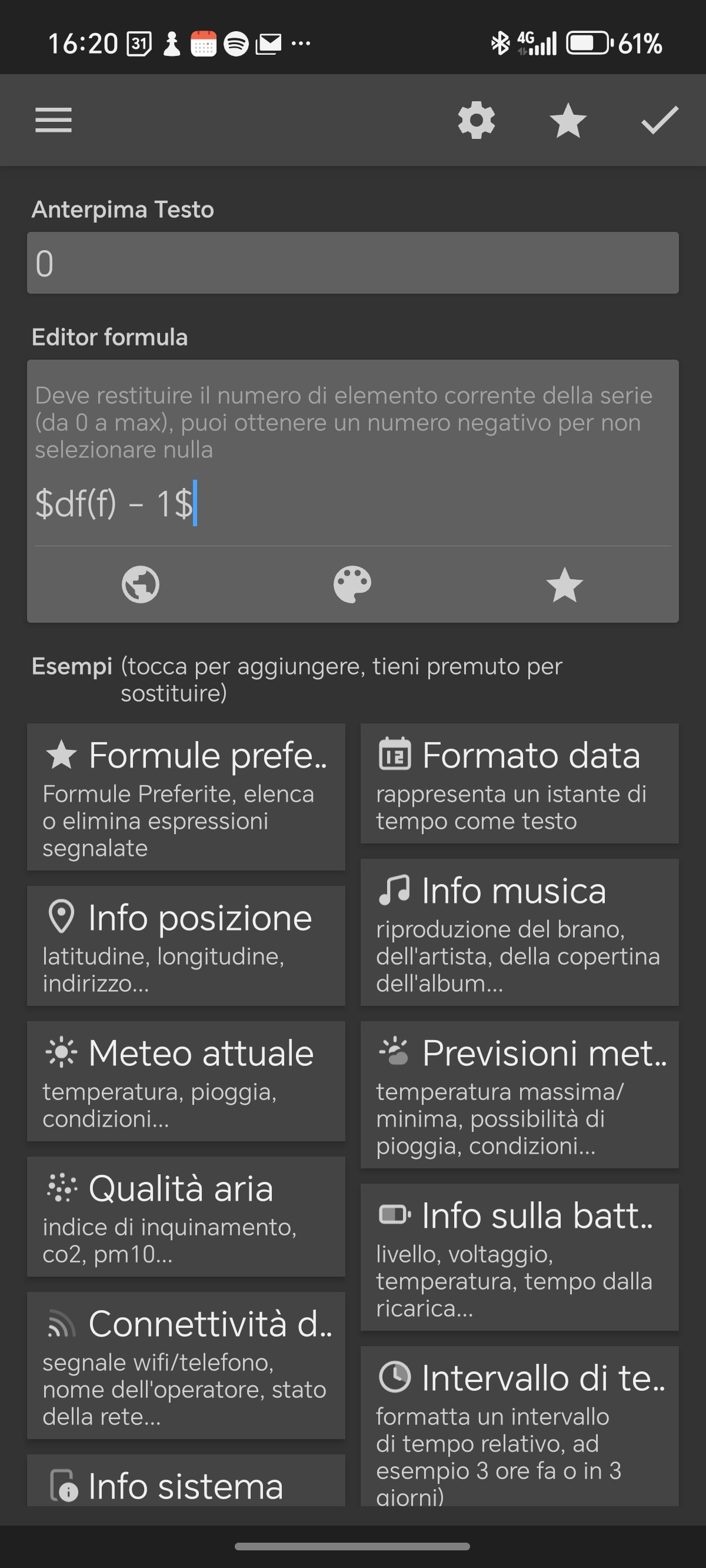 To make it work, your Formula must include the index variable, otherwise Kustom will just repeat the same number 7 times. Double-check if you copied my formula exactly: