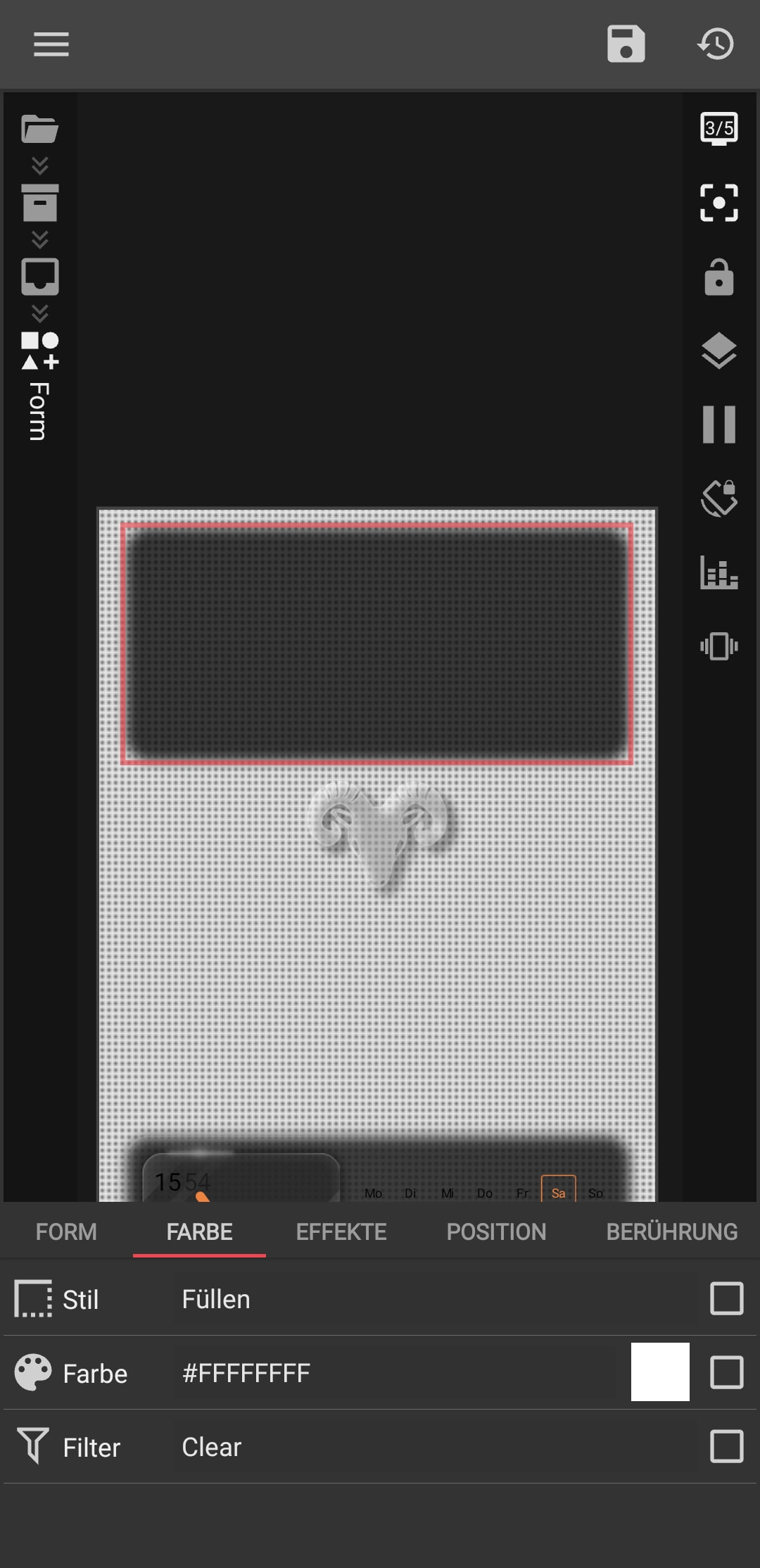 However, I see a major issue on your screenshot: your Filter is set to ‘Clear’. In Kustom, the Clear filter acts like an eraser it literally cuts a ‘hole’ through the widget. With this setting, you will never see the element because it’s forced to be a transparent cutout.