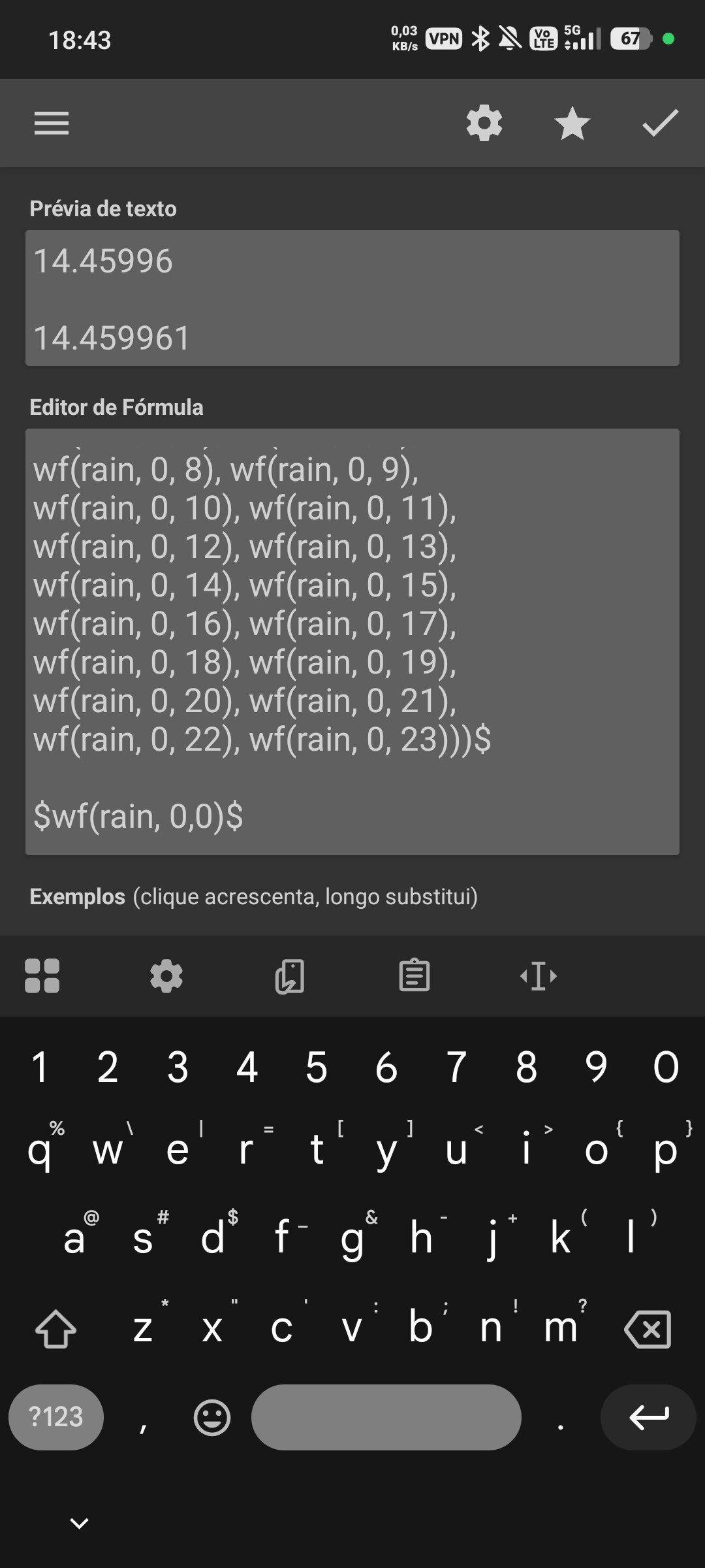 Can you show us the beginning of your formula? What function are you using before the first wf(rain)? Because right now, your ‘sum’ resulting in exactly 14.45 suggests you are just picking one value from a list, not adding them together.