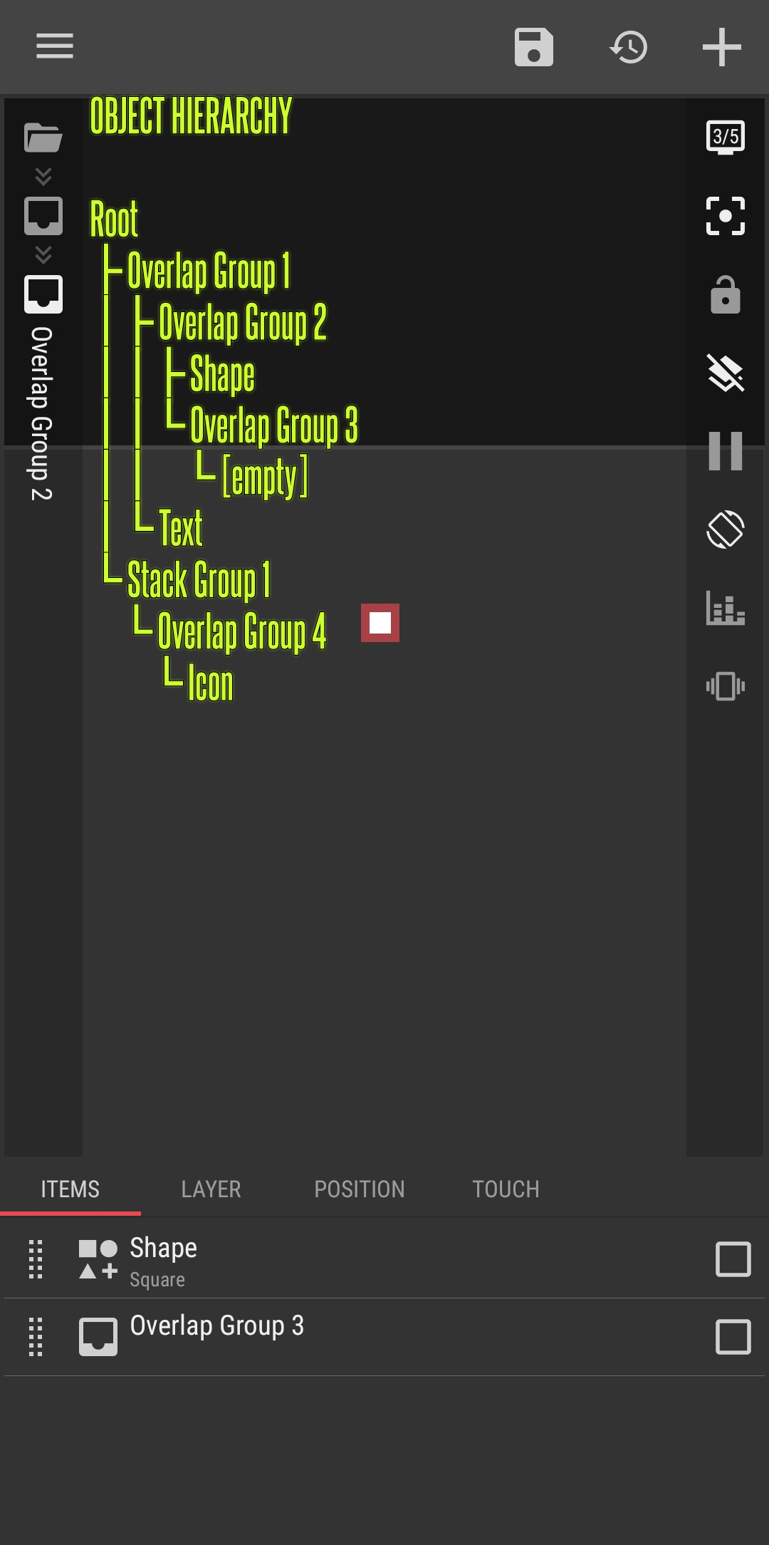 - The object’s name on the left sidebar only showed for the current object. All the parent objects’ name are not shown. This is good because if all the object’s name have to be shown then they will be overlapped and hard to read. As far as I remember, the early versions of Kustom editor used to show every object’s name, and that’s an issue for me to read the object’s names.