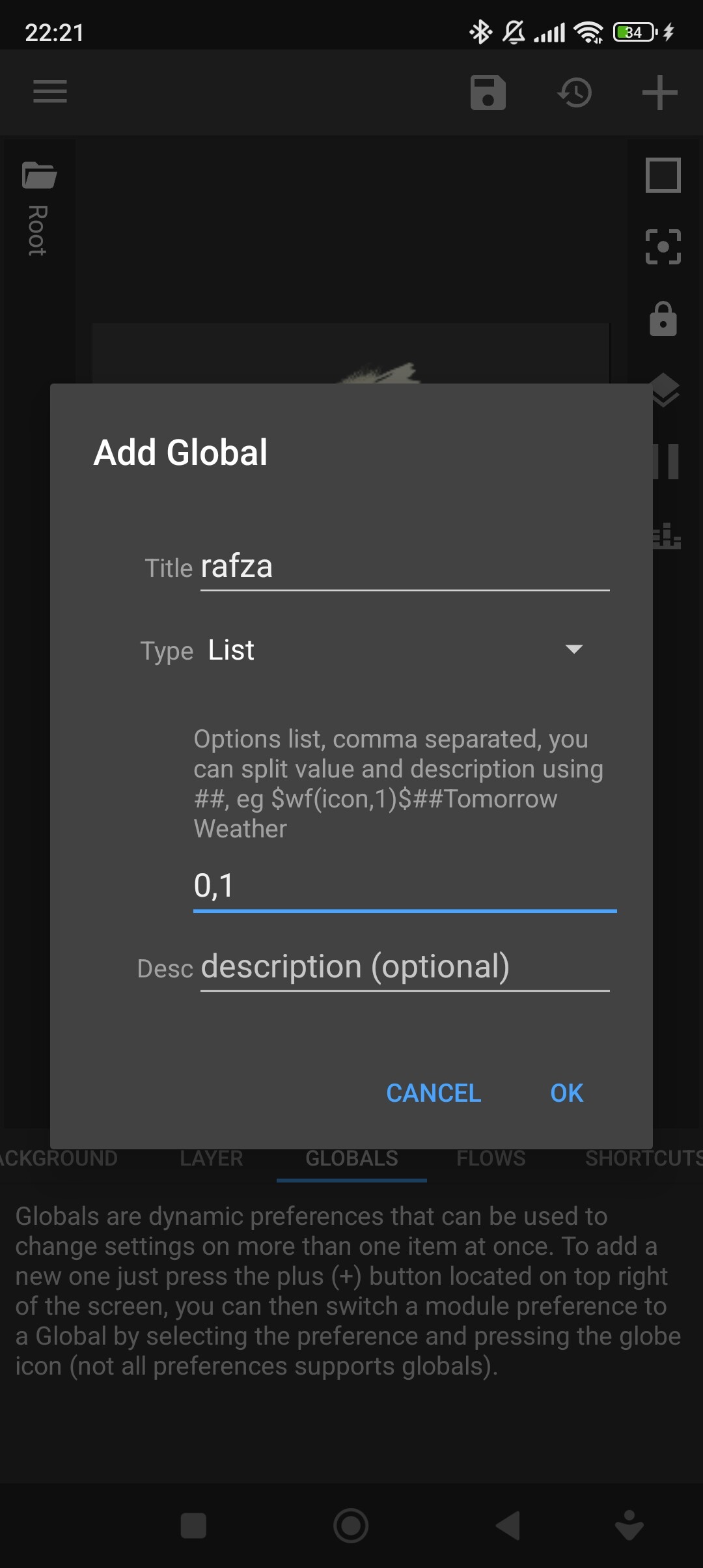 Yes… that’s how u create a list variable. After creating the list, make sure u select one value from list. Only enter the formula at the end. The formula controls visibility of each layer according to value selected from list. I have created exact same widget in my phone. I.e. to switch between two images
